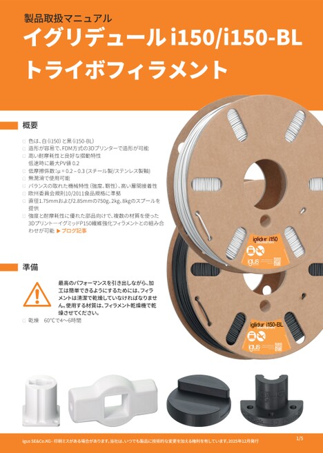 【製品取扱マニュアル】イグリデュール i150/i150-BL トライボフィラメント